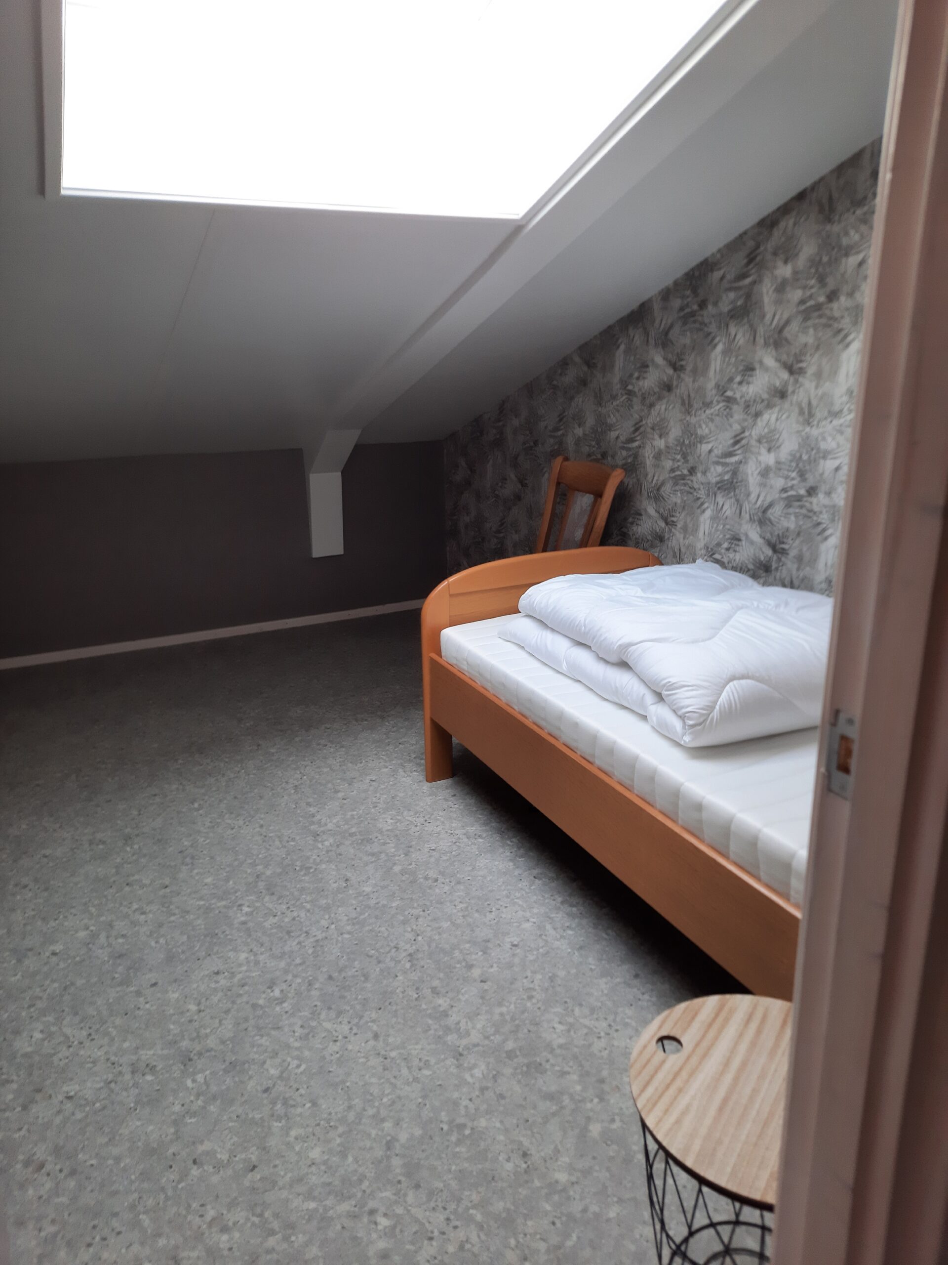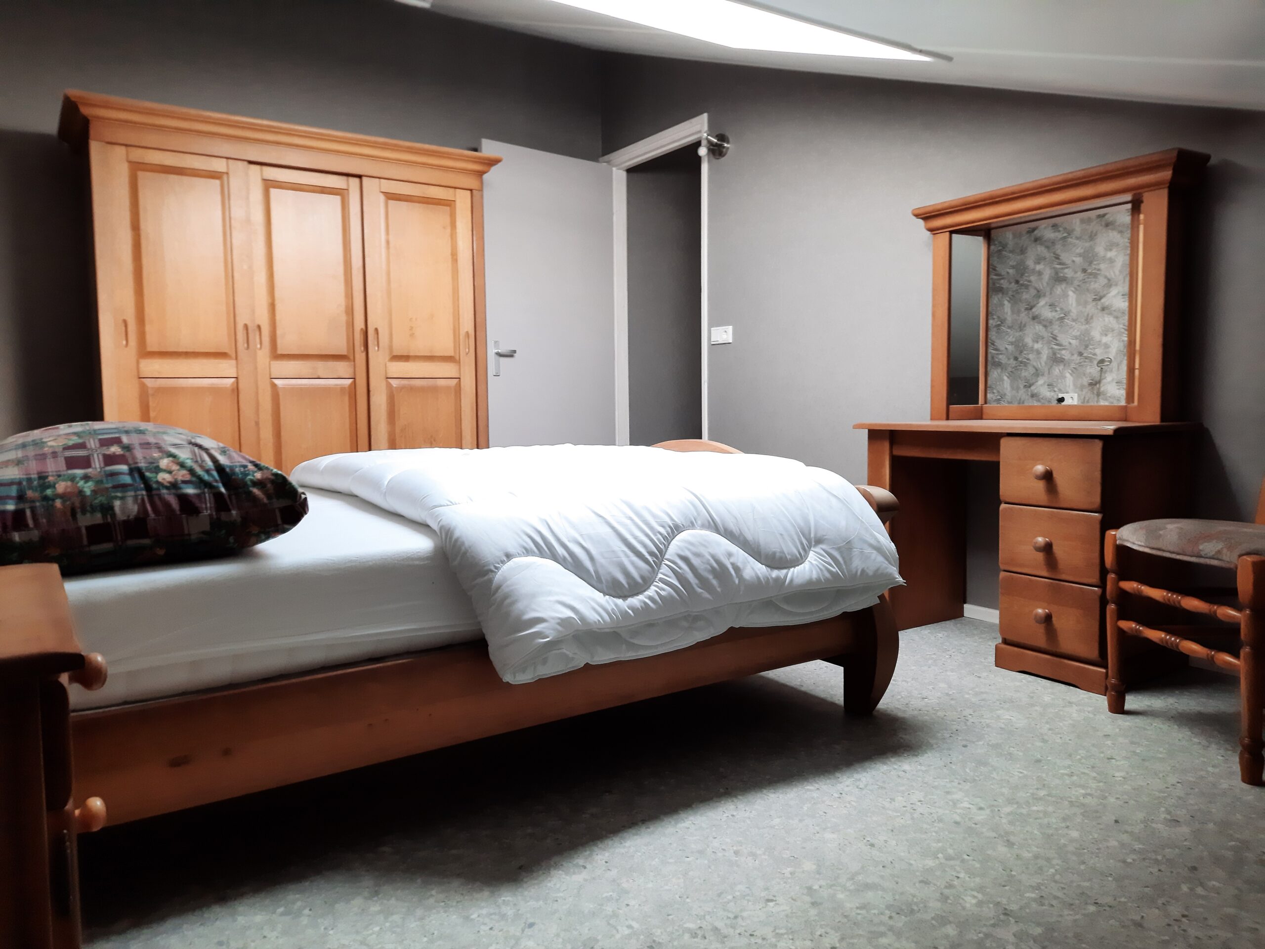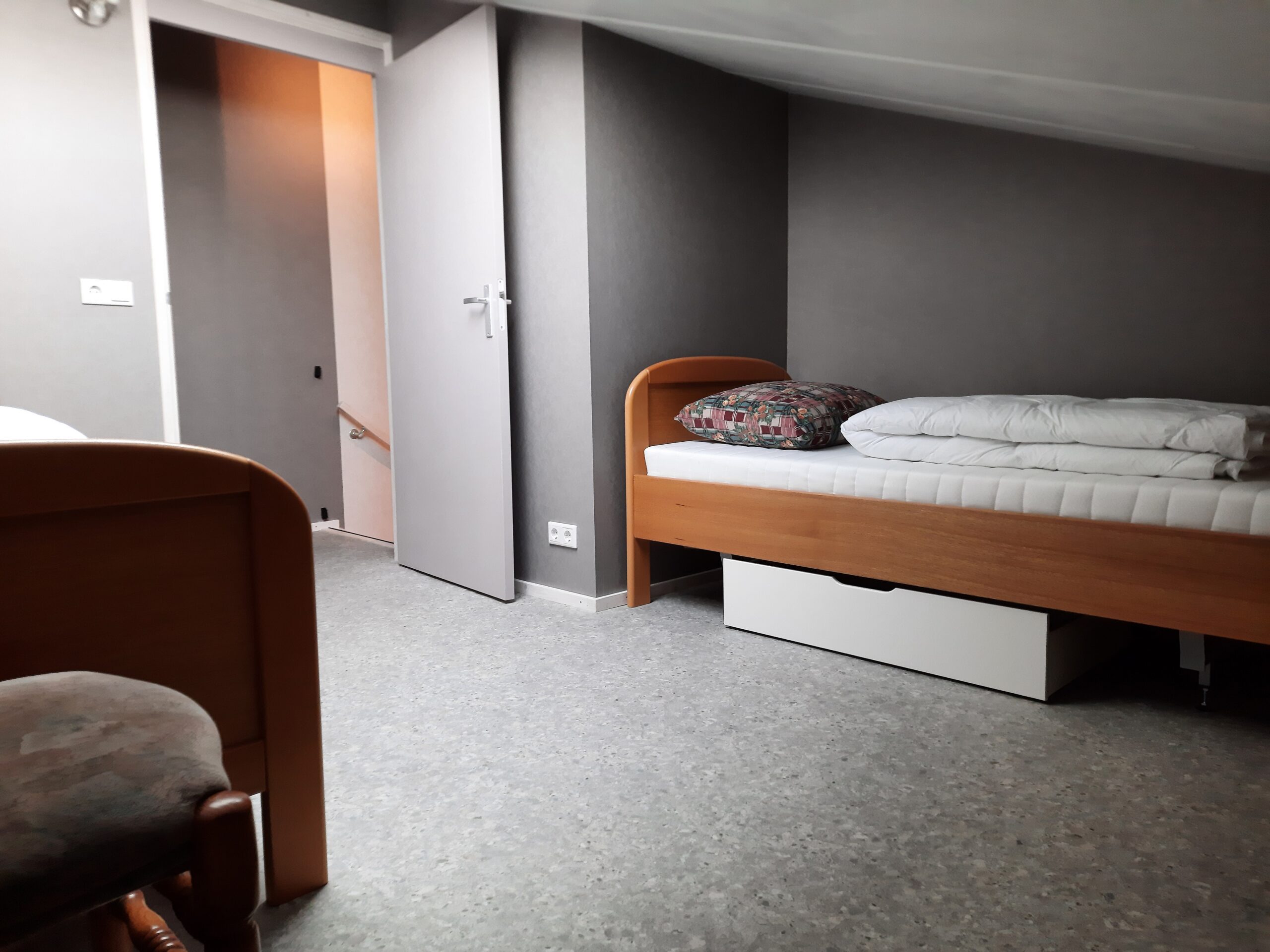 Op de bovenverdieping zijn de 2 slaapkamers met 1 x tweepersoonsbed en 2 x eenpersoonsbed. Er is een vaste trap naar boven.